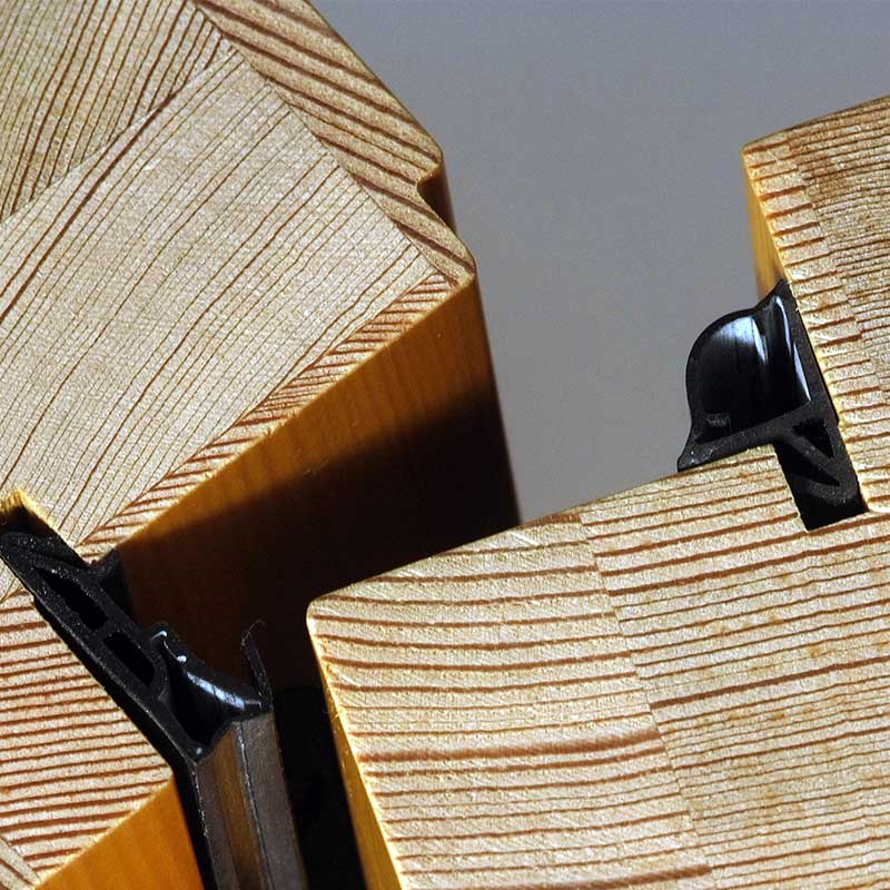 Eine Flügeldichtung, sowie bei Türen mit 80 mm Bautiefe eine zusätzliche dreiseitige Mitteldichtung, sorgen für beste Wärmedämmung, Schallschutz und geräuscharmes Schließen. Selbst an den Bändern werden die Dichtungen nicht unterbrochen. Zugluft und schlechtere Wärmedämmung wären das Resultat.